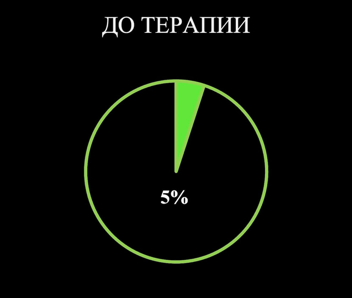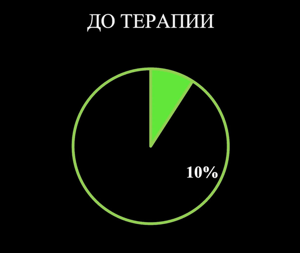 Было проведено 75% работы – жизненно важной терапии, пациент при минимальном корректировании в ближайшее время может завершить реабилитацию полностью.